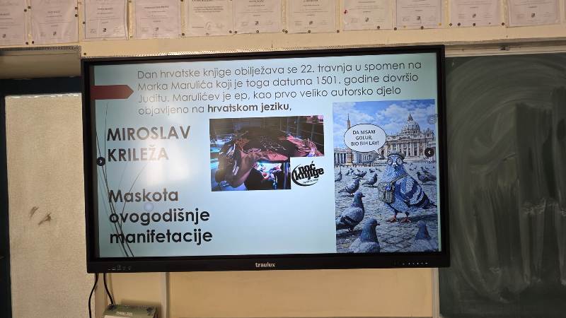 Na zabavan način naučili su nešto novo i podsjetili se na važnost čitanja i obljetnica uz ovogodišnje geslo „Pobratimstvo lica u svemiru“ našeg Tina Ujevića. Za nas je posebno bitan dan kad je objavljena Marulićeva Judita na hrvatskom jeziku. Ovogodišnja maskota Noći knjige golub je Miroslav Krileža po uzoru na našeg književnika i enciklopedista čije se 45. obljetnice smrti prisjećamo u sklopu jubilarne 15. godine manifestacije. Noć knjige posvećena je miru, zajedništvu, nježnosti, dijalogu, razumijevanju, solidarnosti i empatiji, temeljima zdravoga pojedinca i društva.