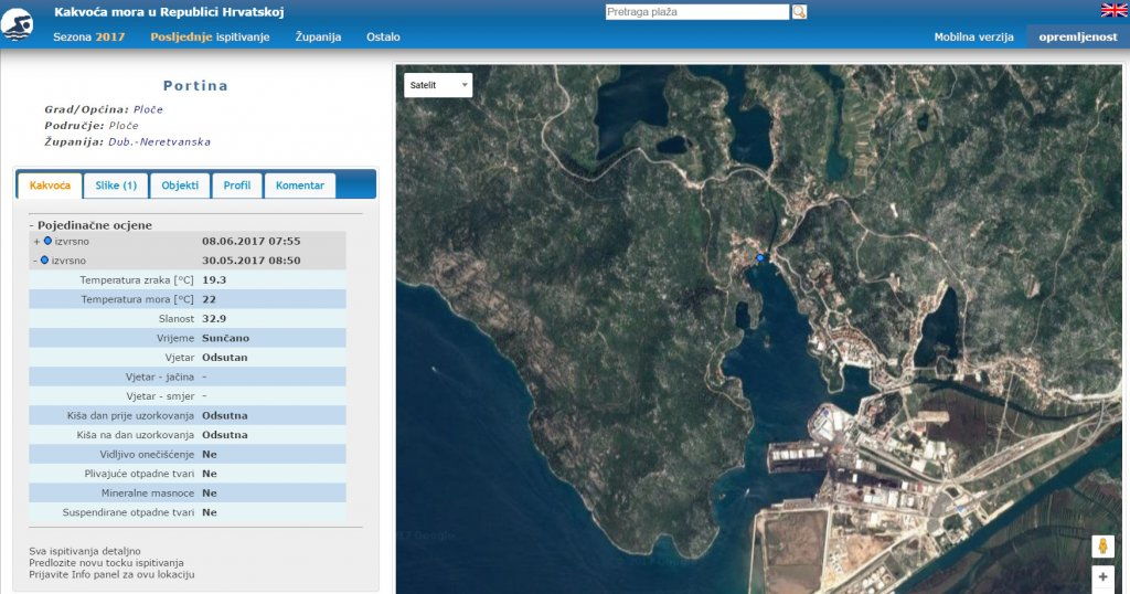U Pločama, na plažama Portina i Ušće, more je izvrsne kakvoće, a ispod teksta prilažemo i rezultate dva posljednja mjerenja.