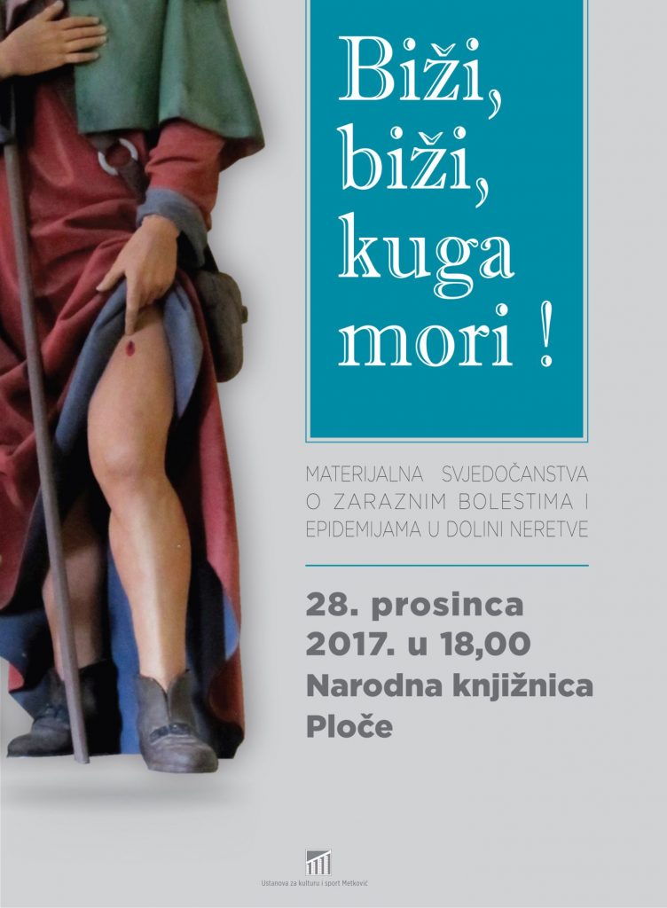 Narodna knjižnica Ploče najavljuje autorsku izložbu lokalne tematike Ivana Vekića i Ivana Volarevića Biži, biži, kuga mori! – Materijalna svjedočanstva o zaraznim bolestima i epidemijama u dolini Neretve, koja će biti postavljena u Narodnoj knjižnici Ploče.