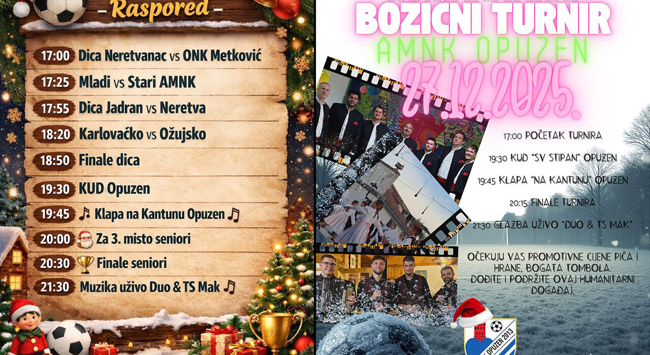 Sportska dvorana Opuzen u subotu, 27. prosinca, bit će središte sporta, zajedništva i humanosti, kada će se u organizaciji udruge AMNK Opuzen održati Treći humanitarni božićni turnir. Program započinje u 17 sati, a organizatori najavljuju bogat sportsko-zabavni sadržaj uz snažnu humanitarnu poruku.