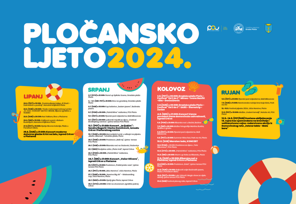 Grad Ploče, Pučko otvoreno učilište Ploče, TZ Ploče i Narodna knjižnica pripremili su bogat program ovogodišnjeg Pločanskog ljeta.