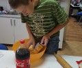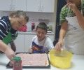 Učenici su sami obavili kupovinu u sklopu koje su odradili i sat matematike… Nije lako zbrojiti sve cijene, skupiti novce i prebrojati ostatak… Školsku čajnu kuhinju preplavili su mali kuhari u šarenim pregačama… Glavni chef Petar razvlačio je tijesto, Mladen je ribao sir, Anđela je mazala ketchup i prala suđe… Za čas se školom proširio miris slasne domaće pizze… Mali kuhari primali su posjete u svojoj kuhinji. Sljedeći zanosni miris u posjete su nam redom dolazili; osmaši, sedmaši, prva susjeda računovotkinja Stela, ravnateljica, tajnica… Treba naglasiti da su mali kuhari za sobom ostavili savršeno urednu kuhinju i oprano sudje! I na kraju zasluženo mali kuhari su marendali svoj specijalitet… Našao se tu i koji komad viška za goste po njihovom izboru… Tako su u slasnim komadima pizze uživali ravnateljica, tajnica i omiljena nastavnica Žana… A kako je to izgledalo iz prve ruke pogledajte sami… Nažalost gotovu pizzu nismo slikali… Nismo stigli… Kad smo se sjetili već je bilo kasno… Toliko je bila dobra…. Do sljedećeg puta pozdravljaju vas školski 3, 2, 1 kuhaj tim!