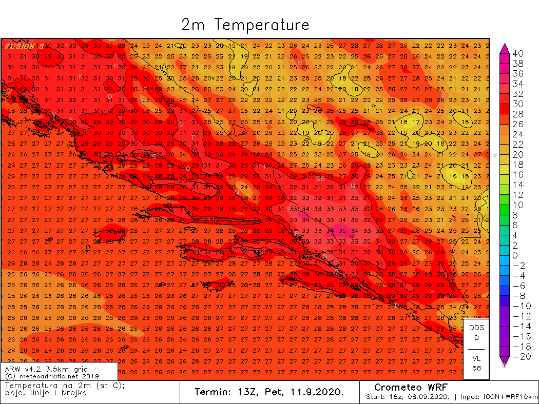 Nakon duže vremena, na dijelu obale i otoka srednje i južne Dalmacija dogodila se vrlo topla večer. Primjerice, u 23 sata u Splitu i Omišu je 26°C, a najtoplije je na dijelu dubrovačkog primorja gdje su temperature od 27 do čak 29°C.