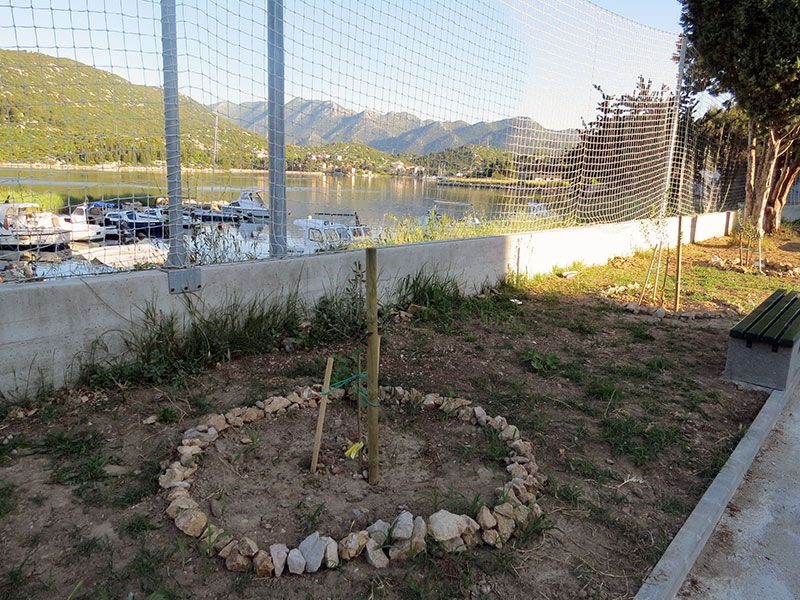 Oblikovanje grmlja, oblikovanje kamenih krugova oko maslina, postavljanje klupa i zaštitne ograde …