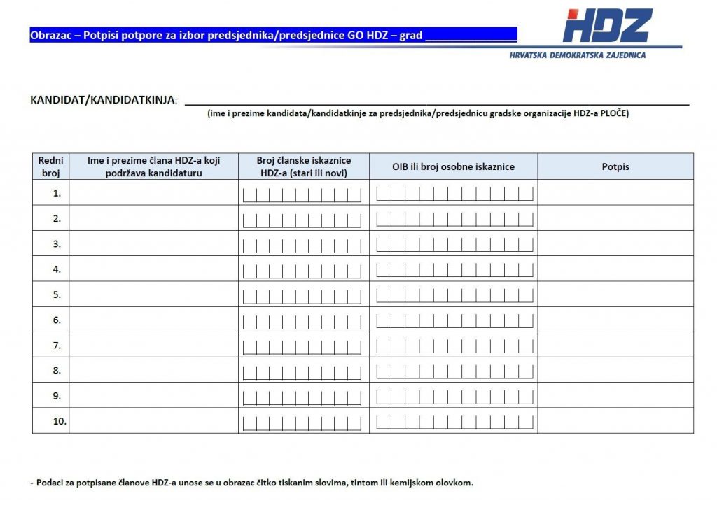 POVJERENSTVO G. O. HDZ-a PLOČE DONIJELO ODLUKU O ODRŽAVANJU IZVANREDNIH PRIJEVREMENIH UNUTARSTRANAČKIH IZBORA ZA PREDSJEDNIKA/CU G. O. HDZ-a PLOČE