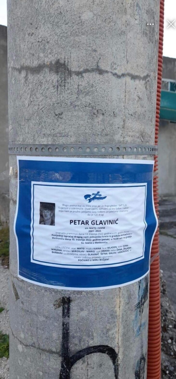 U četvrtak ujutro po Metkoviću su osvanule osmrtnice momka koji je hvala Bogu živ i zdrav! Je li riječ o ‘neslanoj šali’ ili pak prijetnji, u svakom slučaju čin ja za svaku osudu!