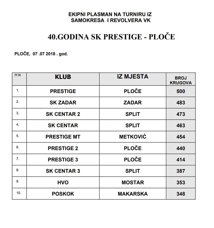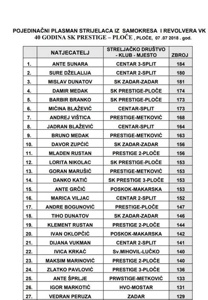 U organizaciji streljačkog kluba Prestige Ploče, dana 7.7. 2018 g, održan je turnir u streljaštvu velikog kalibra, pištolj – revolver na streljani Dračevac u Pločama, pod pokroviteljstvom Beach bar Capitano.
