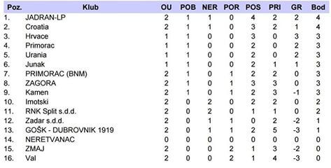 Sve u svemu, utakmica je 90 minuta bila jednostrana i ovakvog Jadrana želimo gledati i ubuduće, kao pravi kolektiv koji se bori za svaki pedalj terena. Lijepo je vidjeti trenutnu tablicu nakon nepotpunog drugog kola!