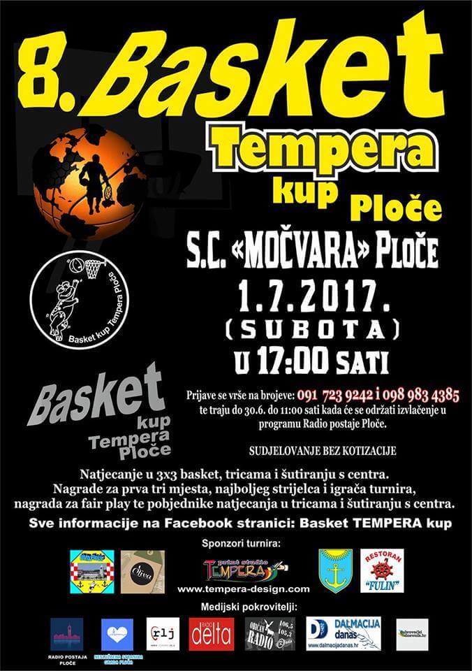 U sklopu Pločanskog ljeta, u subotu s početkom u 17 sati na SC Močvara u Pločama održat će se 8. Basket „TEMPERA“ kup.