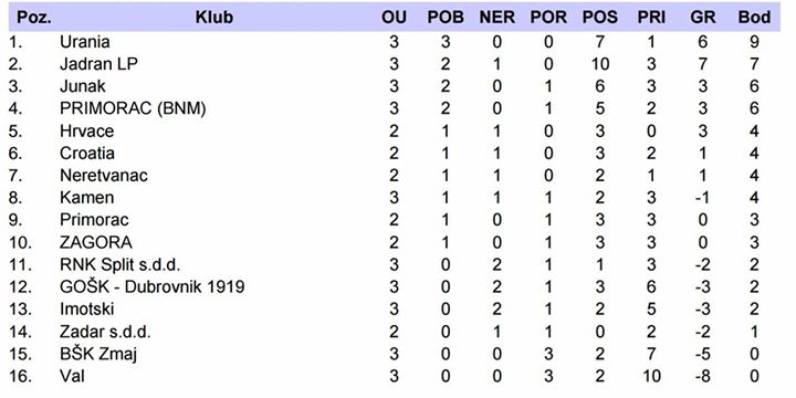 Jadran LP ima sedam od mogućih devet bodova. Proleta je uoči početka prvenstva isticao kako je njegov sastav spreman za dobar rezultat te mjesto u samom vrhu.